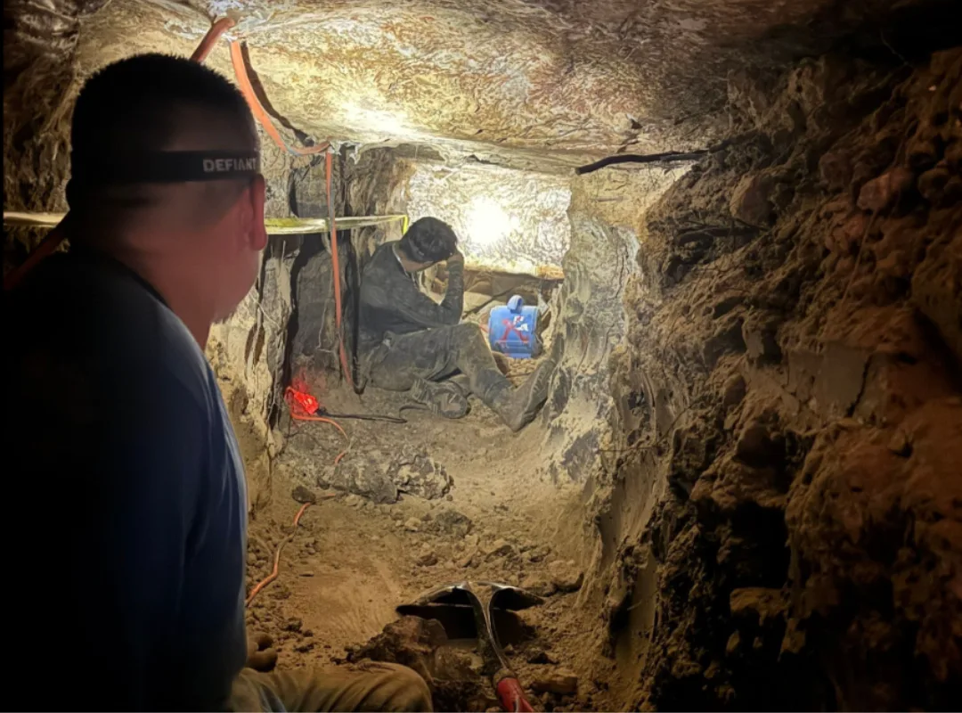 To diagnose the issue, the Pinnacle team conducted a new elevation study of the commercial property, comparing current measurements to previous data to accurately assess movement and determine the severity of the foundation settlement. Based on these findings, double-walled steel piers installed via tunneling were recommended, with an alternative option to break through the interior slab also presented. Tunneling was ultimately selected to minimize disruption to daily operations, protect the newly installed epoxy flooring, and prevent dust that could damage the business’s sensitive print equipment—allowing work to continue without requiring a shutdown.